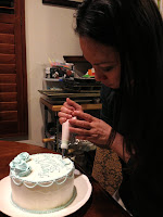 So earlier in the post, I posted the cake I made for myself, but it didn't have anything written on it. I felt too awkward to write happy birthday to myself so my mom said she'd do it. She for the most part doesn't [ever] help me with my baking but I guess she thought she'd give a try with piping a message on the cake! What do you guys think?